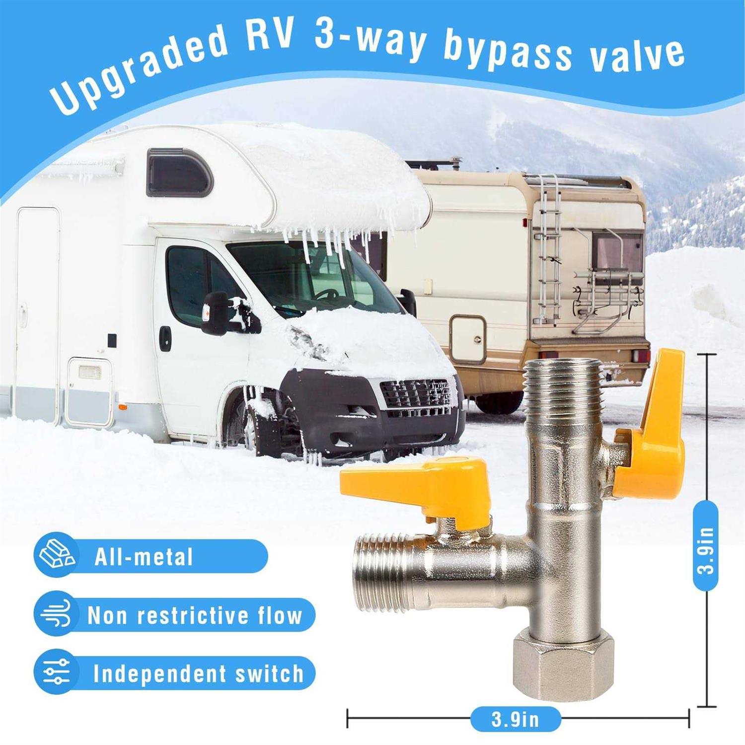 RV 3-Way By-Pass Valve Replacement, RV Pump Converter Winterizing Part, 1/2″ NPT