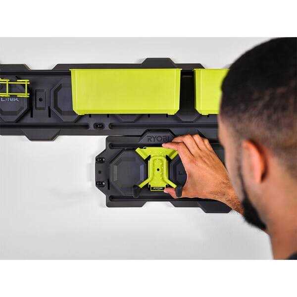 The RYOBI LINK Modular Storage System is revolutionizing the storage industry, enabling you to Organize, Access and Transport your life. The RYOBI LINK 20 PC. Wall Storage Kit allows you to optimize your space with customizable organization. The six 33 in. Wall Rails are easily installed with visible mounting points and provide maximum stud engagement to hold 75 lb. per foot weight capacity. This kit includes six reversible hooks and eight standard hooks to provide the ultimate foundation to organize your life and easily expand with a full range of storage solutions. The RYOBI LINK Tool Organizer Shelf is designed to maximize your storage space. The wide shelf surface, 4 power tool slots and on-board hand tool storage allow for maximum accessibility in tight spaces. The steel construction allows for a 50 lb. weight capacity. Best of all, it is part of the RYOBI LINK Modular Storage System line of products that use the same locking technology. Own your space with RYOBI LINK Modular Storage System.