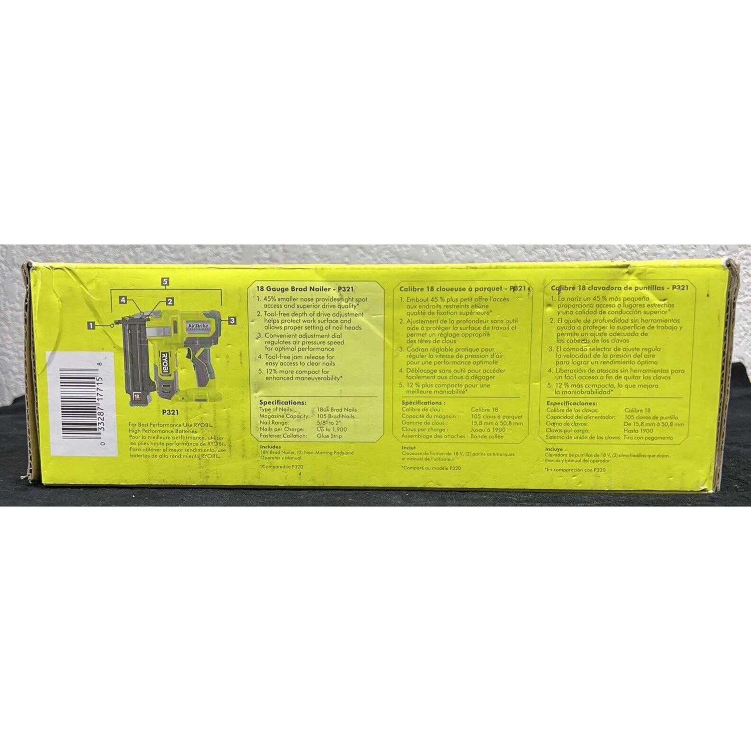 Ryobi P321 One+ 18V 18-Gauge Cordless Airstrike Brad Nailer (Tool Only)