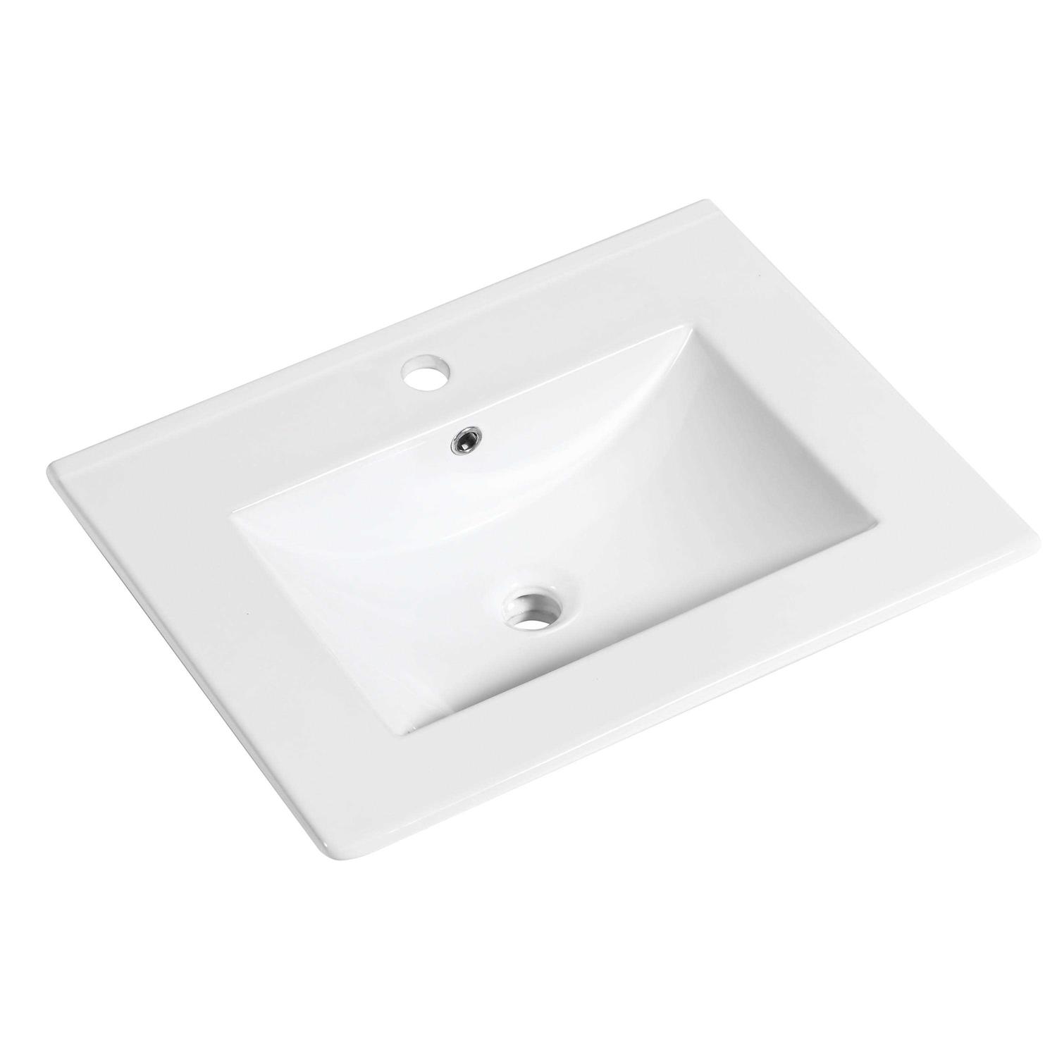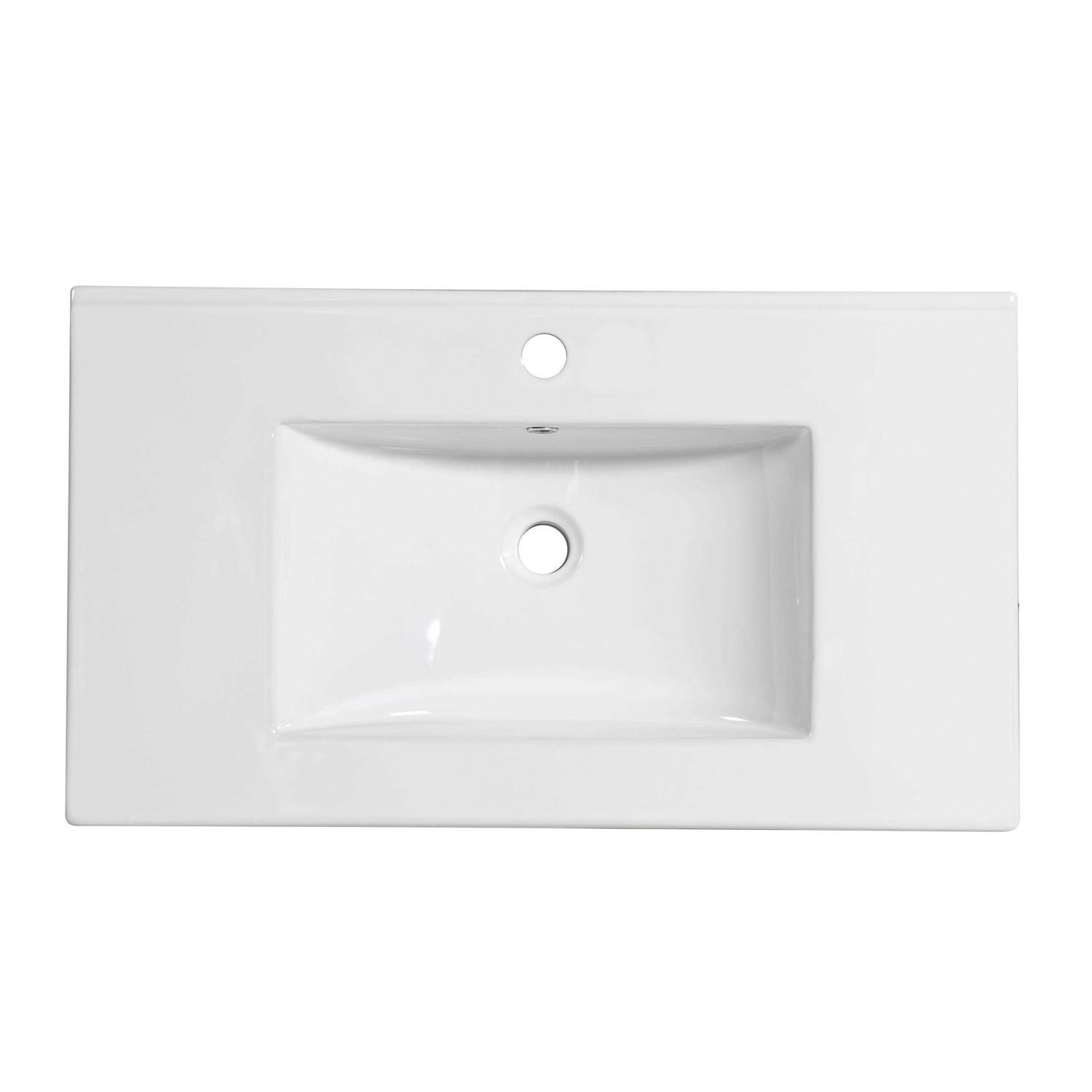Update the look and feel of any bathroom with this contemporary single sink vanity top. Featuring crisp white finish, ceramic construction, the vanity and sink offer a neutral look with clean lines to complement virtually any home. The vanity boasts a rectangular profile with squared corners and is offered in two sizes to accommodate a wide range of spaces. Simple and elegant, this one-hole, single sink vanity is a perfect choice for your new bathroom.