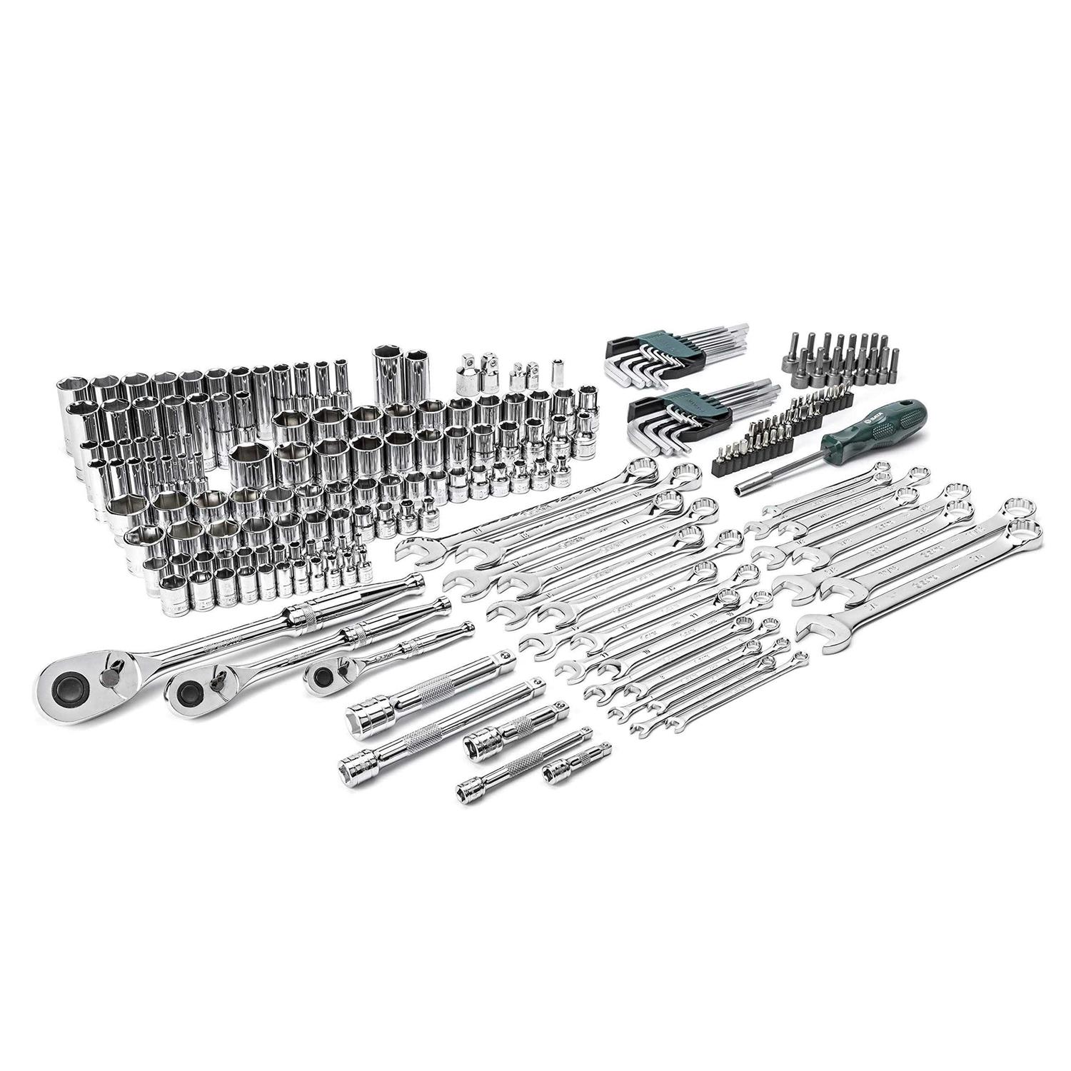 sata 213-piece 1/4-inch, 3/8-inch, 1/2-inch drive three drawer mechanic’s tool set with 72t ratchets and 107 sockets