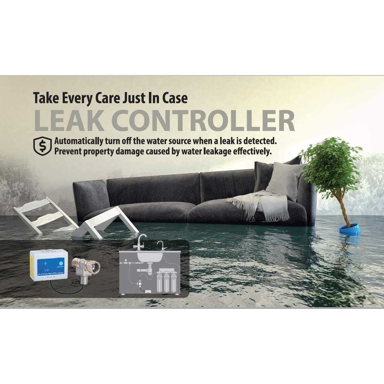 Auto shut off water when water leak is detected 9V alkaline battery operated Auto shut off when low battery power Easy installation Protection for leaking caused by water filter, water softener p strong Savant Leak Detector, Auto Shut-off Valve for Water Leak Controller /strong strong AS-414 /strong – strong Specification /strong br / Operating voltage: 9V DC (Alkaline battery only) br / Supply Current: typical 1 mA, maximum 15 mA. br / Cable Length: 1.5 M for solenoid valve cord br / Connecting: 1/2” BSP male br / Water leak detecting method: br / Control unit with detecting metal put on the floor near water filter br / Environment temperature: -20 ~ 80°C br / Maximum Pressure: 8 Bar – strong br / Content /strong – ol li User Manual /li li 9V Batteries x1 /li li Quick Fitting 1/4″OD-1/2″BSP@2PCS /li li Quick Fitting 3/8″OD-1/2″BSP@2PCS /li /ol