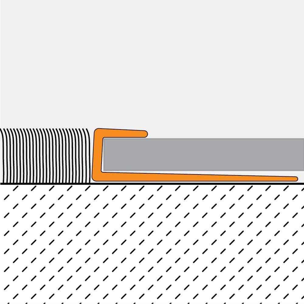 Vinpro-S is designed to provide a finished edge for resilient coverings such as LVT. This profile can be used on the floor where the resilient covering meets carpet or another covering of similar height. It can also be used on the wall as a finishing edge for wall skirting applications. The profile has a tapered anchoring leg with holes for installation with fasteners or it can be installed with an adhesive such as Kerdi-Fix.