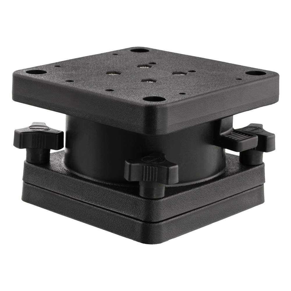 Provides 360 rotation to the downrigger. Sixteen locking positions and four stainless mounting bolts for quick removal. Separate base allows removal from boat. Nylon bearing provides lifetime of trouble free operation. Nylon and stainless construction. Includes stainless mounting hardware. Mounting plate dimensions 51/2 X 51/2. Bolting dimensions 41/2 x 31/2.