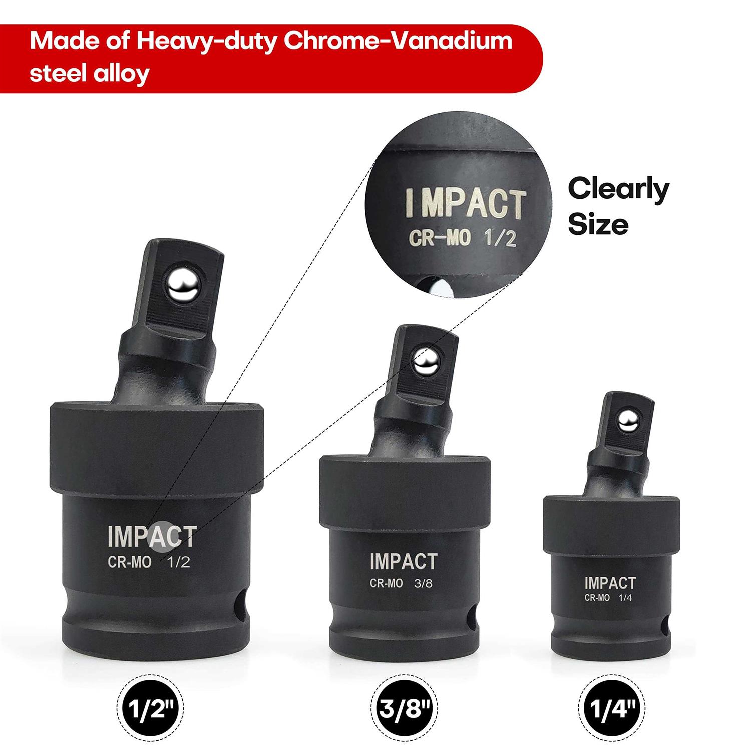 Made from Heavy-duty Chrome-Vanadium steel alloy (50BV30) with a corrosion-resistant black phosphate finish, providing the durability for a hard use. This Set includes 8 pc extension bars in 1/4″,3/8″ & 1/2″ Drive impact extension bar, 4pc Impact socket adapter, 3pc Impact universal joint: 1/4″Drive, 3/8″Drive, 1/2″Drive, 3 pc Impact coupler :1/4″Hex*1/4″Drive., 1/4″Hex*3/8″Drive., 5/16″Hex*1/2″Drive. This high quality socket accessory set includes the sizes and tools you’ll need for almost any project. High-contrast size marking is permanently laser etched and easy to read, even in low light. It come with a heavy duty blow molded storage case, easy to carry, transportation and safe storage. Made from Heavy-duty Chrome-Vanadium steel alloy (50BV30) with a corrosion-resistant black phosphate finish, providing the durability for a hard use. This Set includes 8 pc extension bars in 1/4″,3/8″ & 1/2″ Drive impact extension bar, 4pc Impact socket adapter, 3pc Impact universal joint: 1/4″Drive, 3/8″Drive, 1/2″Drive, 3 pc Impact coupler :1/4″Hex*1/4″Drive., 1/4″Hex*3/8″Drive., 5/16″Hex*1/2″Drive. This high quality socket accessory set includes the sizes and tools you’ll need for almost any project. High-contrast size marking is permanently laser etched and easy to read, even in low light. It come with a heavy duty blow molded storage case, easy to carry, transportation and safe storage.