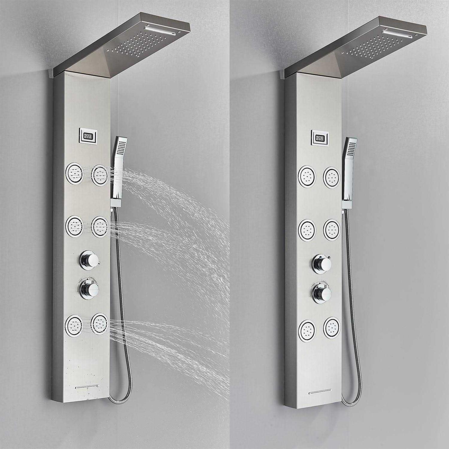 Senlesen Shower Panel Tower System Rainfall Waterfall Shower Massage Body Jets, Size: 5 in, Silver