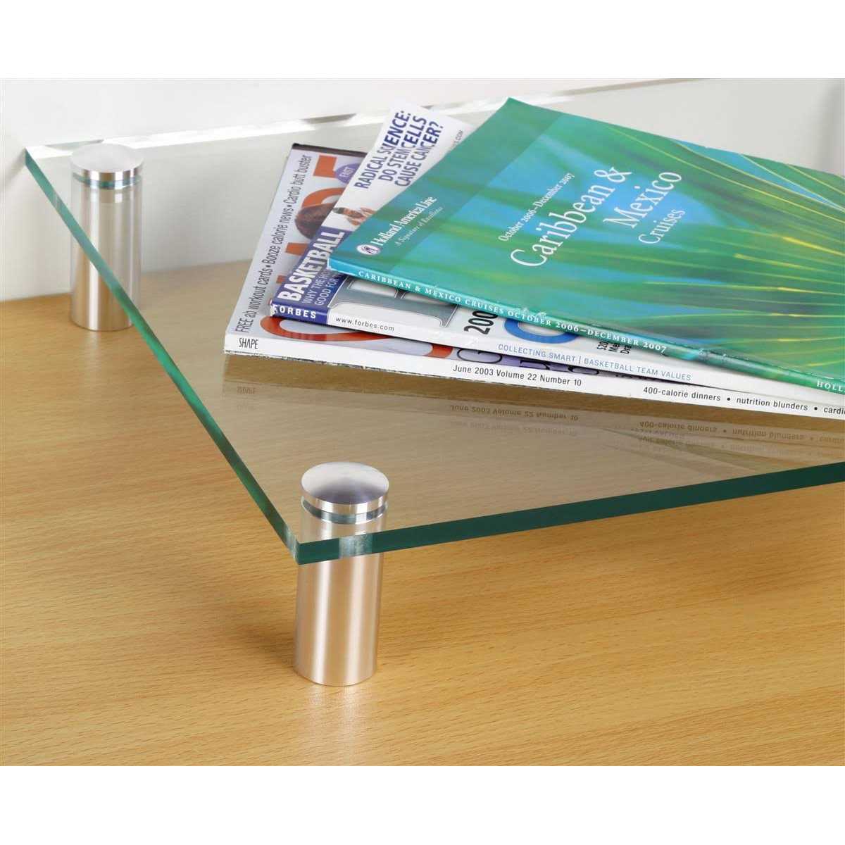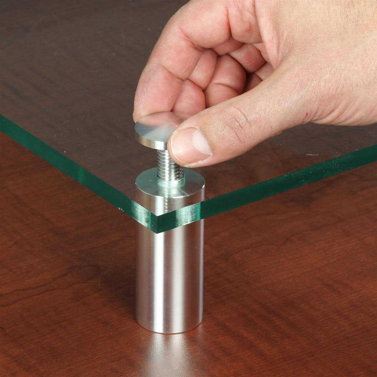 Best suited for flat applications such as displays for merchandise, stand-offs deliver with quick assembly and sharp looks. These aluminum standoffs, and other sign supports, boast a bright polished finish. They look exceptional. These display mounts are the perfect stand-offs, including other sign supports, one would want to use in retail displays. Used for shelf supports, these stand-offs, and other sign supports, can handle up to 1-1/4″ thick material. You’ll need 1/2″ holes drilled through the panels. A few twists of the standoff caps later and you have an instant table or shelf. This beautiful display hardware shows itself off in window displays, waiting rooms, and receptionist counters. How about hangers for merchandise? The applications are endless! Dimensions of each standoff: 1-1/4″ wide diameter x 2-1/2″ off the wall. Each unit includes 4 standoffs for mounting one sign.