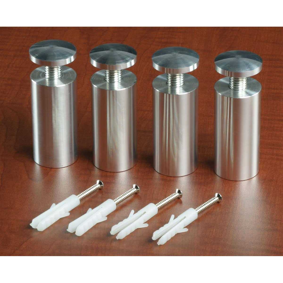 1-1/4 inch x 2-1/2 inch Set of 4 Extra Large Polished Silver Finish Aluminum Standoff Screws for Shelf Displays (SO3265AL)