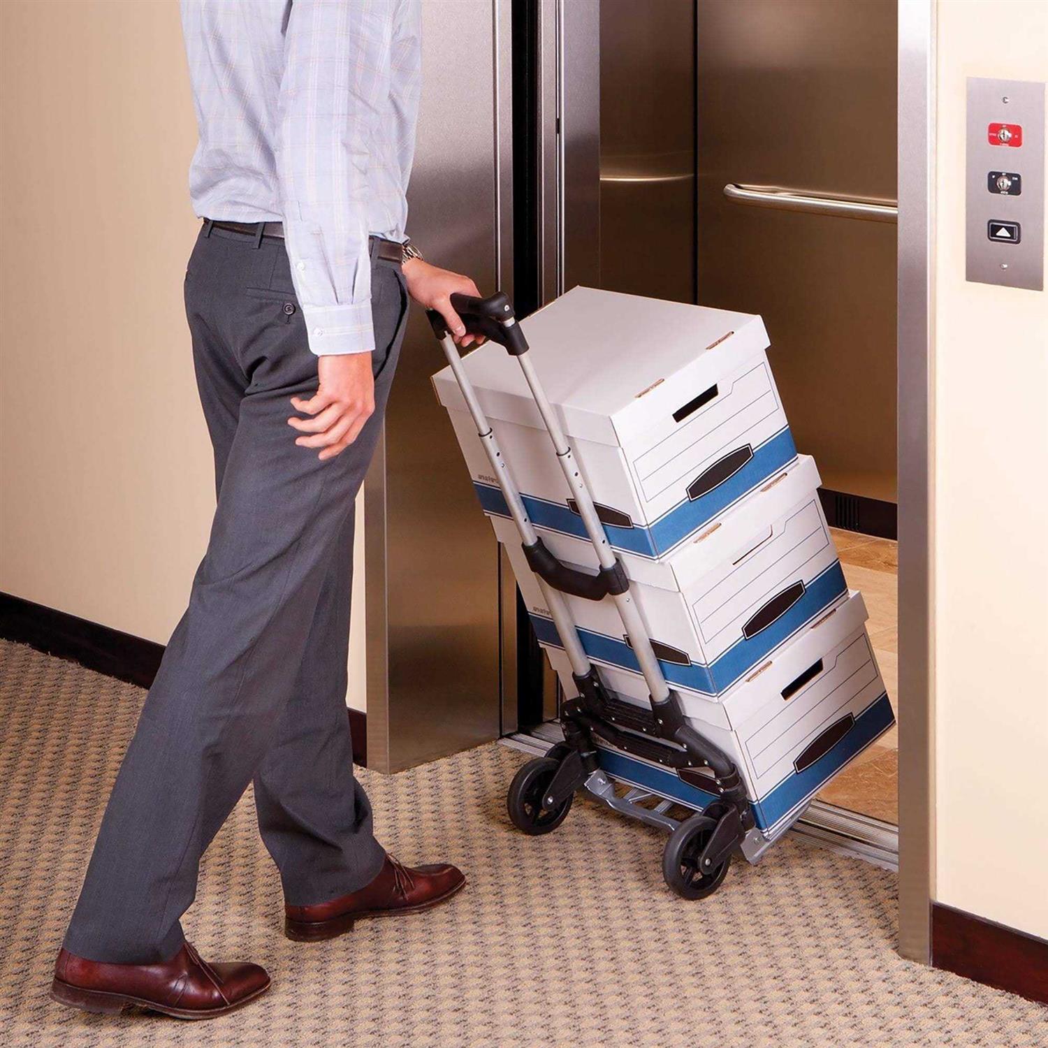 - Hand truck is easily collapsible for storage at home in closets, garage cabinets, car trunks, and offices Adjustable Height Handle.
