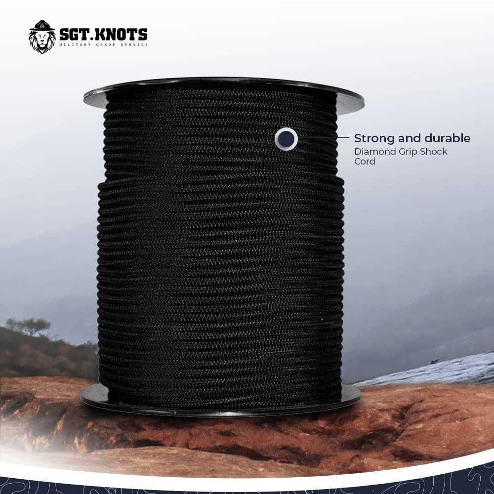 Sgt Knots Diamond Grip Elastic Bungee Cord – 100% Stretch and Shock Absorbent for Camping, Kayak Deck, Crafting (5/16″ x 100ft, Black)