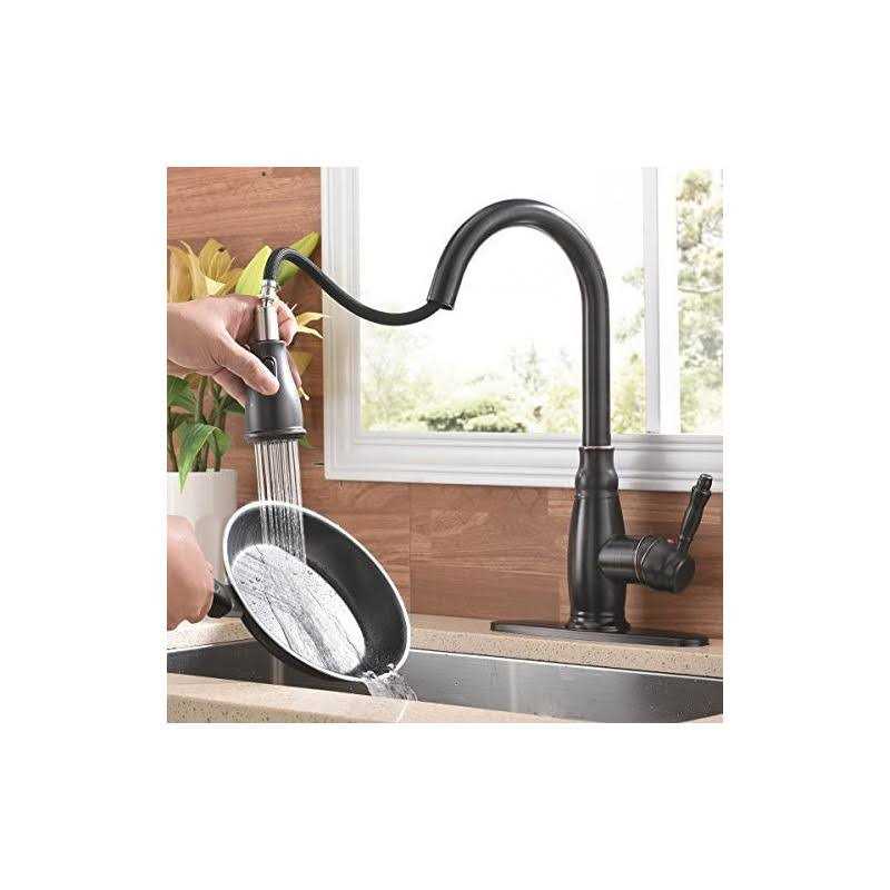Shaco Antique Single Handle Pull Down Sprayer Oil Rubbed Bronze Kitchen Faucet, Kitchen Faucet Bronze with Deck Plate 701690