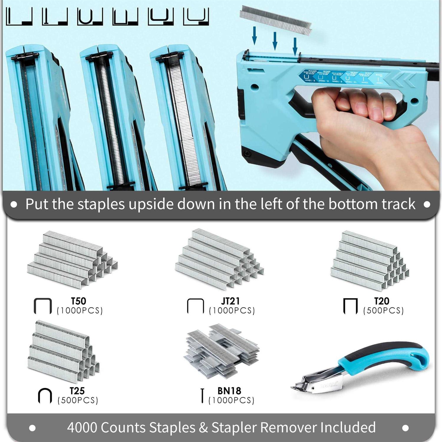 Shall 6-in-1 Staple Gun Heavy Duty Upholstery Stapler Nail Gun with 4000 Counts Staples