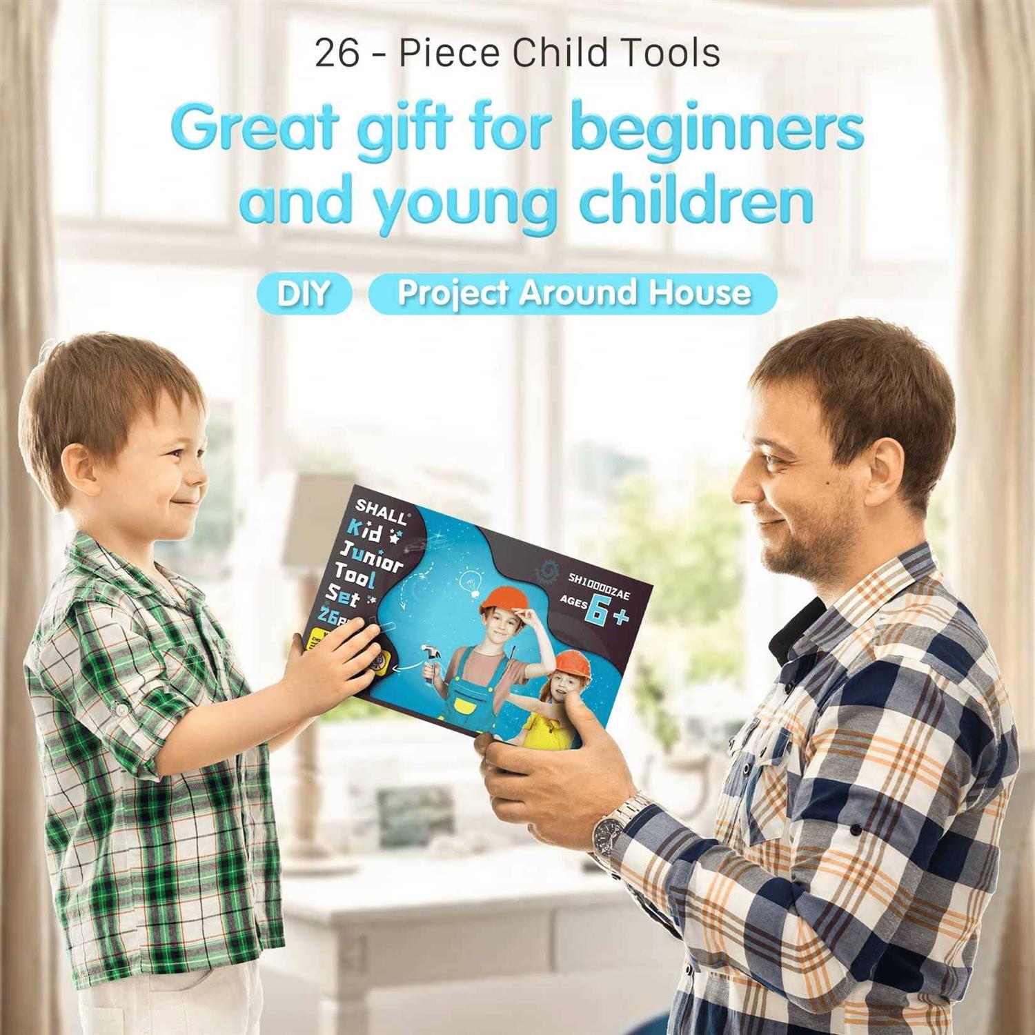 Shall 26-Piece Kids Size Tool Set, Real Tools Kit for Kids with 12 inch Tool Bag, Safety Certified Children Learning Tool Set with Hand Tools for Boys