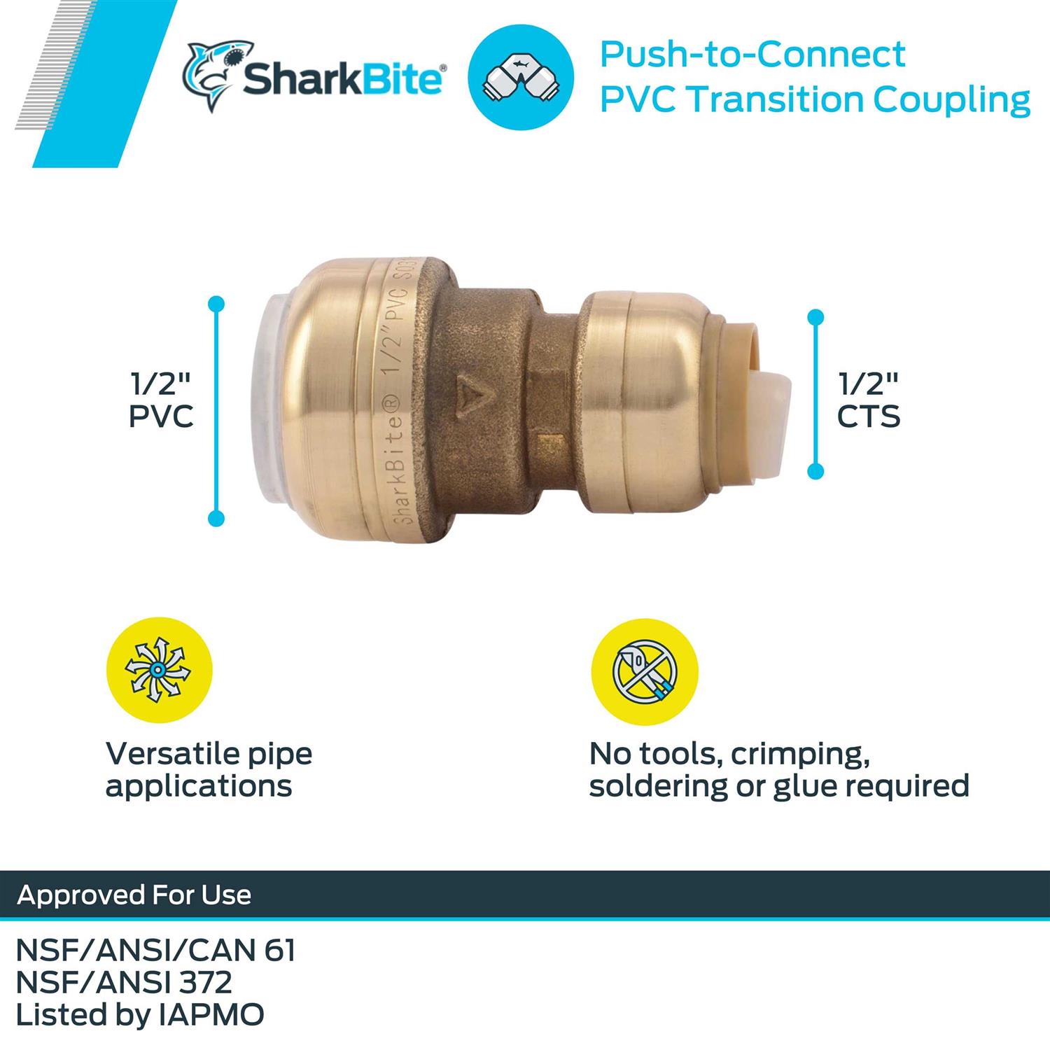 SharkBite 1/2 in. CTS x PVC Brass Push-to-Connect Coupling UIP4008A