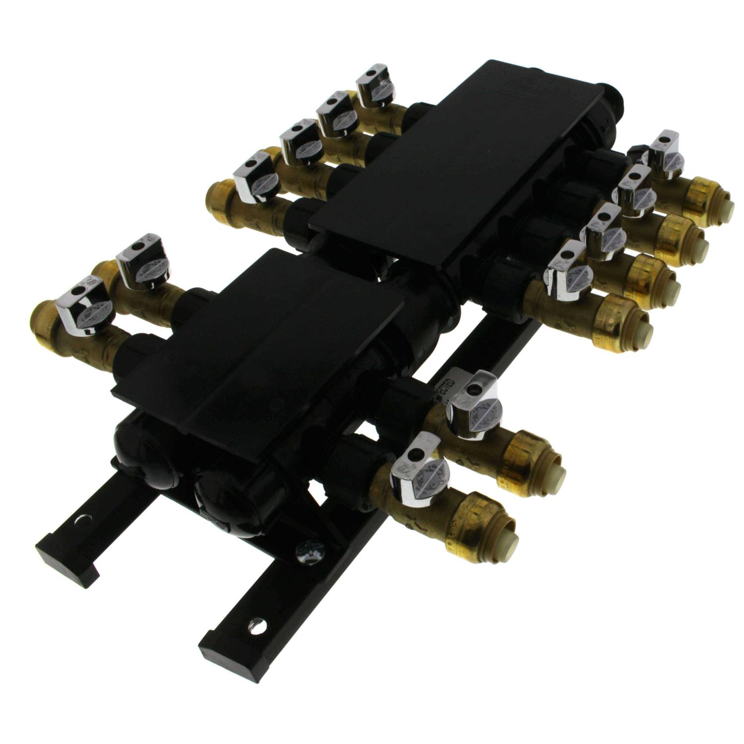 Similar to an electrical breaker box, allows for central control for all water lines throughout the home. Innovative push-to-connect design makes for quick and easy installation. Minimizes the risk of leaks by eliminating excess connection points. Designed for use in a PEX system. Included in box: one 12-port manifold, UMV12B6 ball valves (12 total), CTS x NPS Female connectors (2), hot & cold water distribution labels, and instructions.