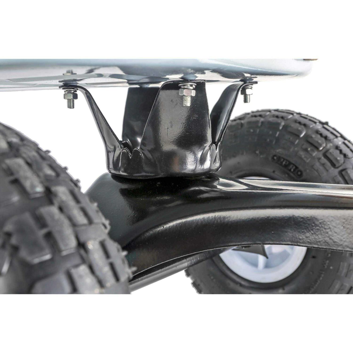 This multi-purpose wagon is equipped with 10″ pneumatic wheels for smoothly transporting cargo, even over rough surfaces. The tires hold a pressure of 30 psi and support a maximum load capacity of 300 pounds. The heavy-gauge steel box measures 14″ x 32″, so there is a great amount of space for transport. Pull the wagon through any terrain with little effort, and your load will be secured by the high wooden side panels. Efficient and safe transporting materials for building projects, gardening, and more!