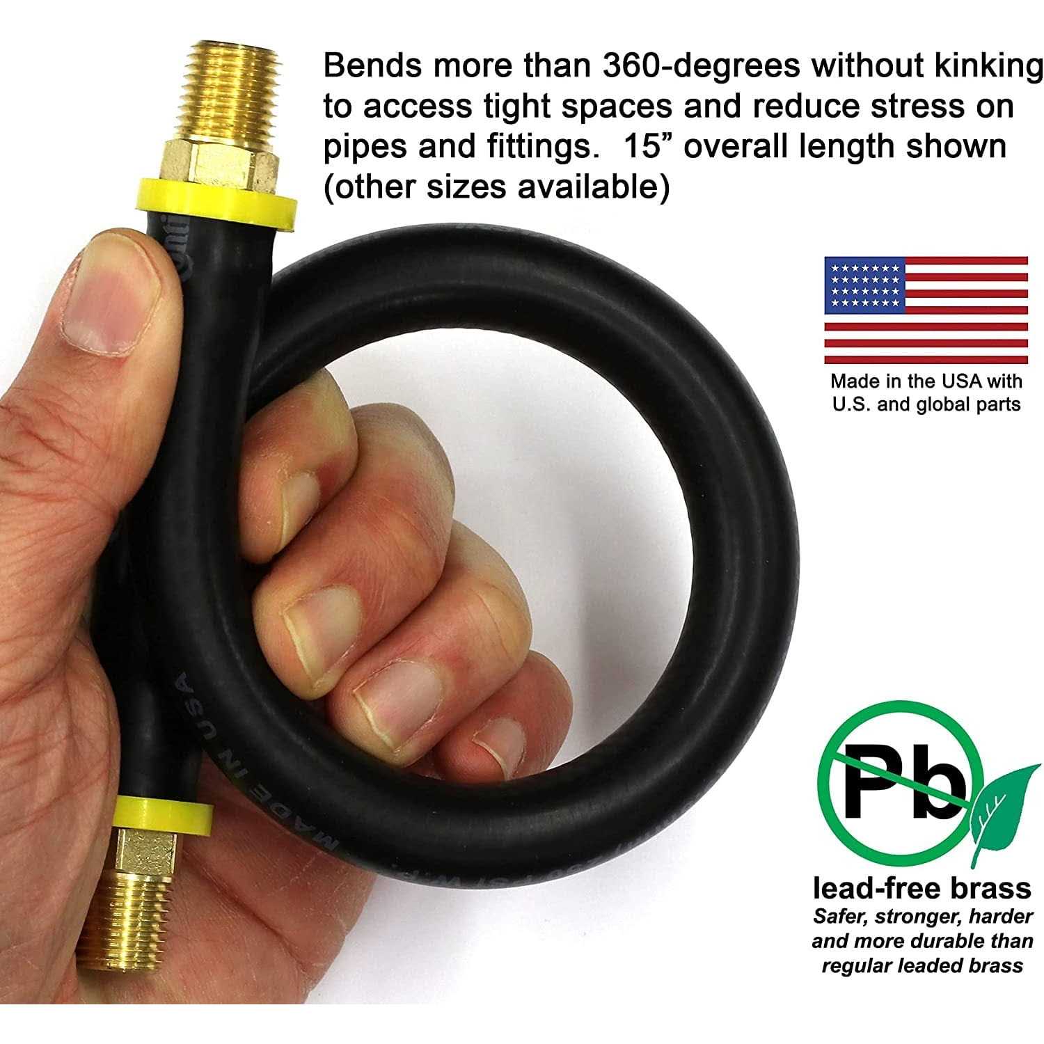• Approximately 18 inches long only. Perfect for use as a lead-in or leader hose to reduce stress or vibration normally associated with rigid piping.