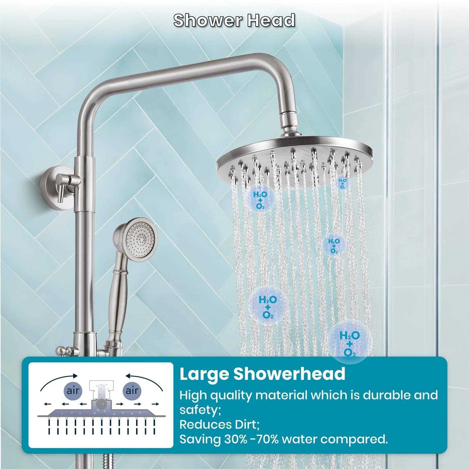 Be the first to review “Shower Faucet Set Exposed 8 Rain Shower 2 Double Knobs Handle Brushed Nickel Triple Function Tub Spout Shower Fixture Combo System Unit Set”
