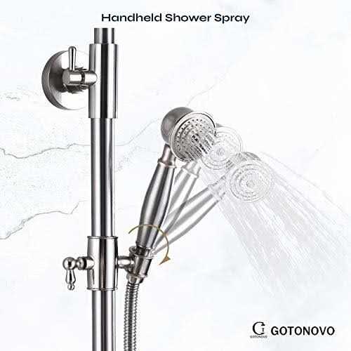 gotonovo Shower Faucet Set 8 Rain Shower 2 Double Knobs Handle Brushed Nickel Triple Function Tub Spout Shower Fixture Combo System 635274