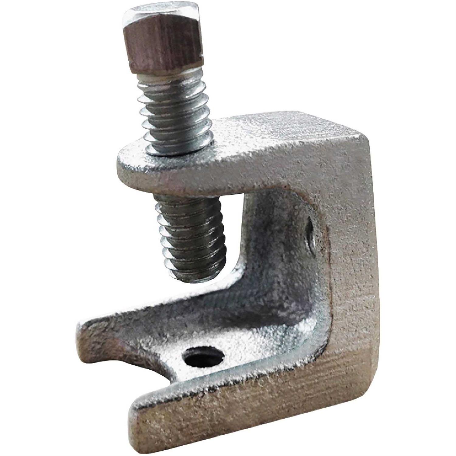 Mounting base for conduit hangers 1/4-20 threaded hole and 13/16″ Jaw opening For beam thickness 1/8″ – 1/2″ Product is cULus listed Zinc-plated iron construction 1/4″ 20 malleable iron. Used on a beam, girder, or similar structure to provide a mounting base for conduit hangers. Zinc plated. Bagged. CSA.