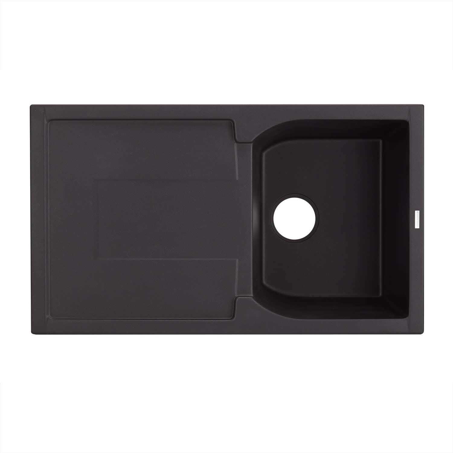 Signature Hardware 937685-34 Allardt 34″ Drop-In Granite Composite Sink with Drainboard Black Fixture Kitchen Sink Composite 425907