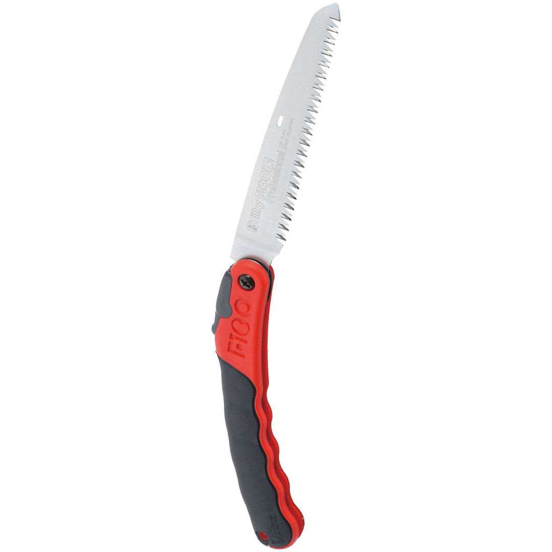 The F180 folding saw is a lightweight folding pocket saw aimed predominantly at the light pruning and gardening market. The blade is 180mm long with a large tooth configuration of 7.5 teeth per 30mm. The blade locks in two positions to allow flush cuts. The handle is constructed of fibreglass polypropylene with a rubber insert to ensure a comfortable and sure grip. It is an ideal cost-effective all-round folding saw that is always useful for all garden pruning tasks and outdoor projects. It is not possible to sharpen the blade but the saws are designed to have replaceable blades. Other parts are also available. There is just one screw to unwind in order to change the blade. Technical Specifications Blade width 32 mm Blade thickness 1.35 mm Blade length 180 mm Overall length 420 mm Crosscut teeth 4 mm The blade must be kept clean to maintain its efficiency. Resin dissolves in olive oil, which is an effective and environmental friendly way to maintain the blade with.