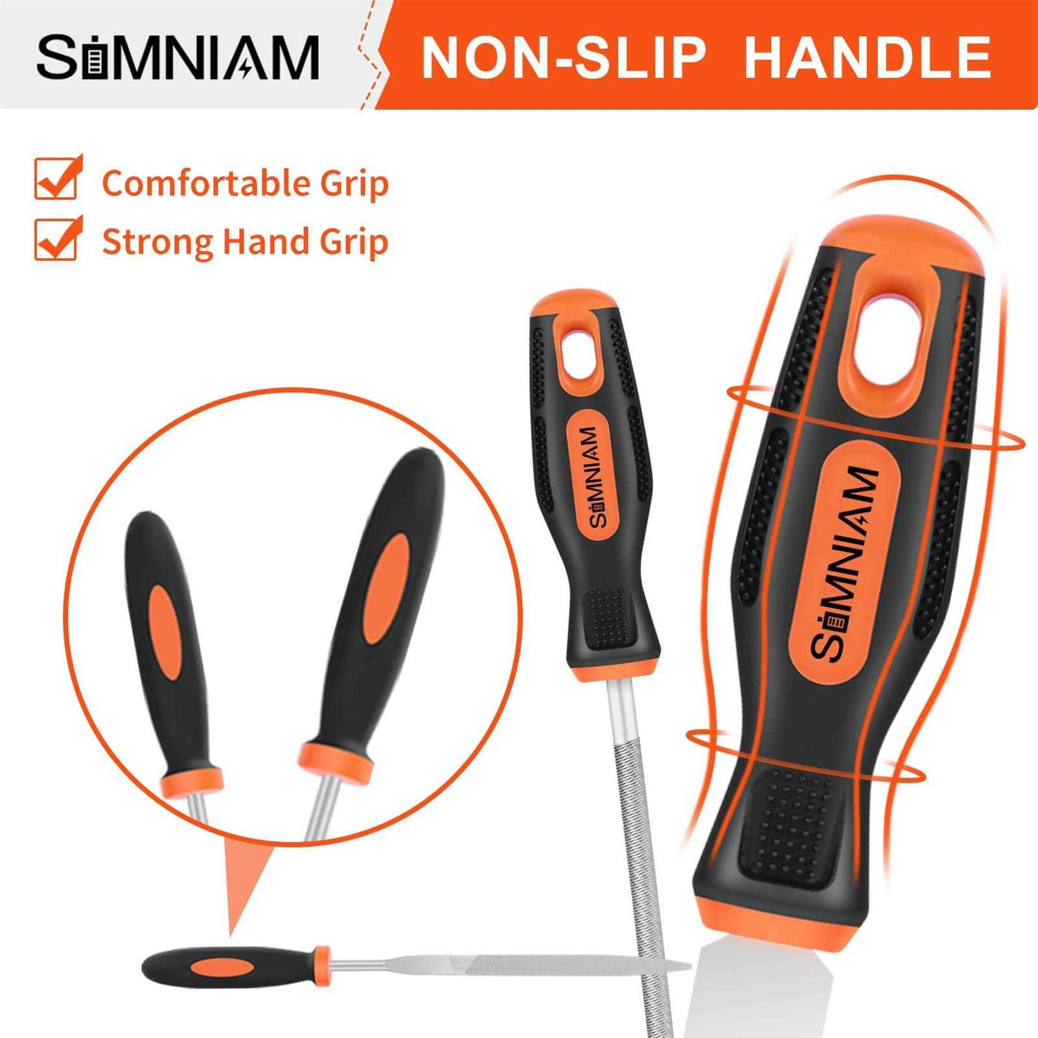 【SIMNIAM 18Pcs Metal Files Set】- The metal files tools contains 4*200mm large files (flat file, half-round file, round file, triangular file), ideal for modeling wood, metal, mirrors, glass, tile, ceramics, leather and so on; 12*140mm needle files (5.5 inch), can use for removing, refining, reshaping and scraping projects; 1*steel cleaning brush, helps to clean the metal file; 1*portable suitcase, convenient storage and organization. 【T12 Premium Grade Alloy Steel】- These metal files are made of T12 Drop Forged Alloy Steel, sharp and durable. The durable teeth of the file set are deeply hardened and coated to provide durable cutting and reaming performance. 【Comfortable Soft Rubber Handle】- The soft rubber handle not only non-slip, but also feel comfortable, so you can use it for a long time. The ergonomic design can save your time and protect you. 【Portable Carrying Case】- All files are packed in a sturdy, compact and portable suitcase for easy storage and carrying, making them ideal for carpenters and DIY enthusiasts. Each tool is in close proximity to its respective position to prevent movement and scratching. 【Wide application】- Perfect for metal grinding, surface treatment of wood, metal, mirrors, glass, tiles, ceramics, leather and so on. Suitable for home, garage, workshop, work site. Simniam metal file set flat metal file half round file small file set files tools for metal file tool set metal files for steel file for metal files metal file