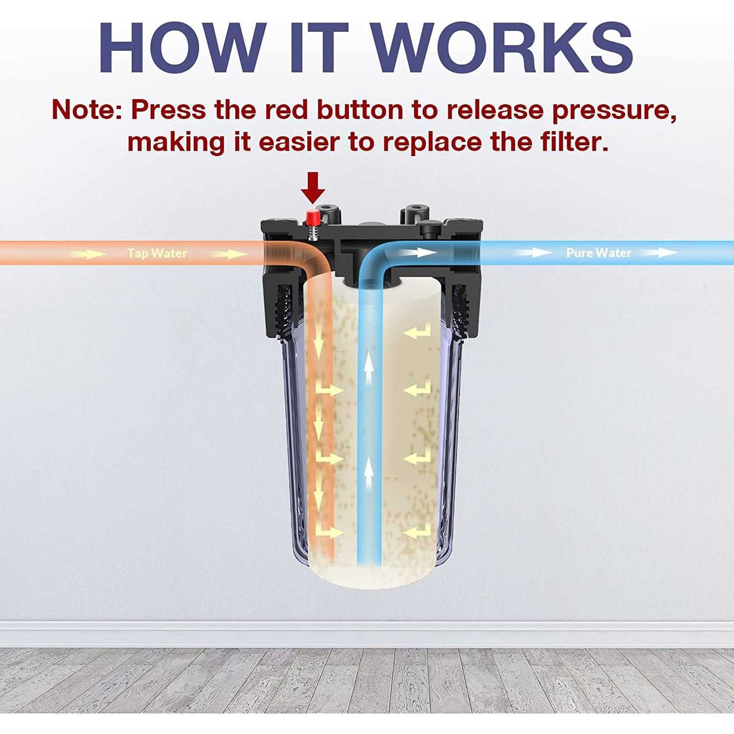 SimPure DB10C 10 inch Whole House Water Filter Housing are made to most 4.5 inch x 10 filter cartridges(filter not included). Ideal for typical applications as whole house pre-filtration for RO reverse osmosis systems, under sink filters, countertop systems in garden, kitchen, under sink filtration and bar or ice maker.With the 10 inch whole house water filter housing for sediment filter, compressed activated carbon filter, granular activated carbon filter, ect, you can have peace of mind that it can purify the water coming into your home, make your family drink cleaner. It can keep the particles out of the pipes and plumbing fixtures, less maintenance for the downstream pipeline, water purifier, water heater, wall hung gas boiler, wash machine, shower, and other terminal water equipment.