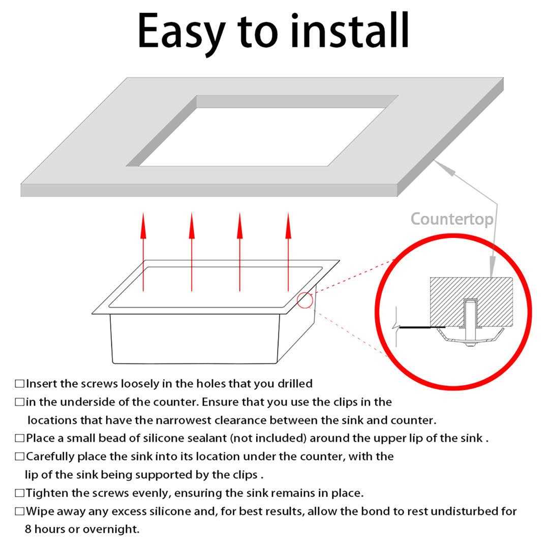 - Package include: undermount sink, mounting hardware and cut-out template.