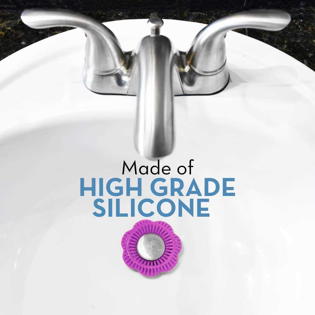 SinkRing The Ultimate Bathroom Sink Drain Protector Hair Catcher/Strainer/Snare – Floral Shape/Purple Color, Size: 2.8