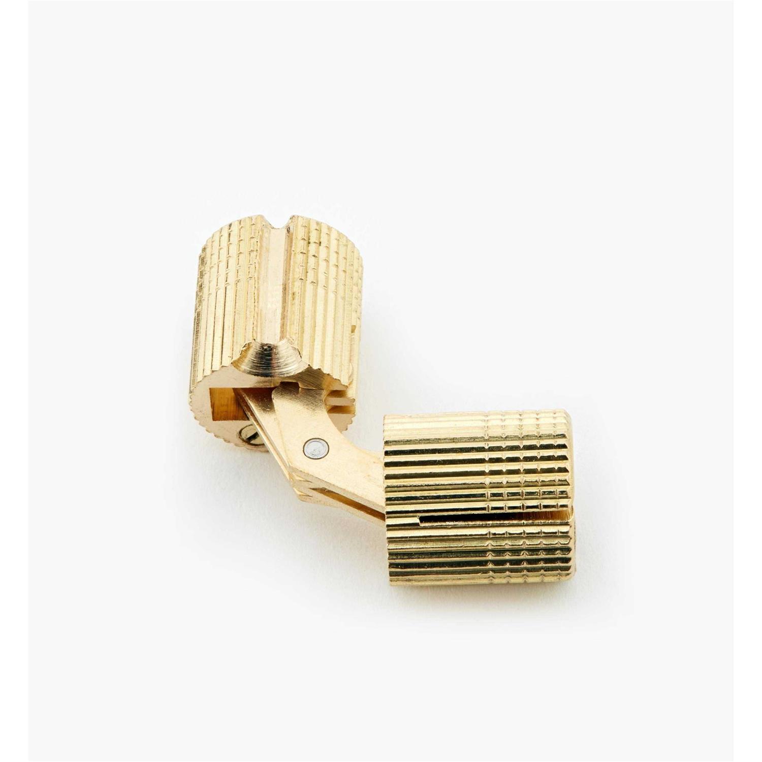 Used where you want a fully hidden hinge, these are machined from solid brass, have steel linkages, and open 180°. Simply drill the appropriate sized hole, insert the hinge, and turn the set screw on the exposed face to wedge the hinge in position. For heavier load applications, a flat-head screw can be driven through the machined recess on the side opposite the set screw to further wedge and retain the hinge in place. The barrel bodies are also toothed to provide an additional mechanical lock, or to allow for optional gluing. Size given is the barrel diameter – use the same metric size for drilling. Prices given are per hinge.