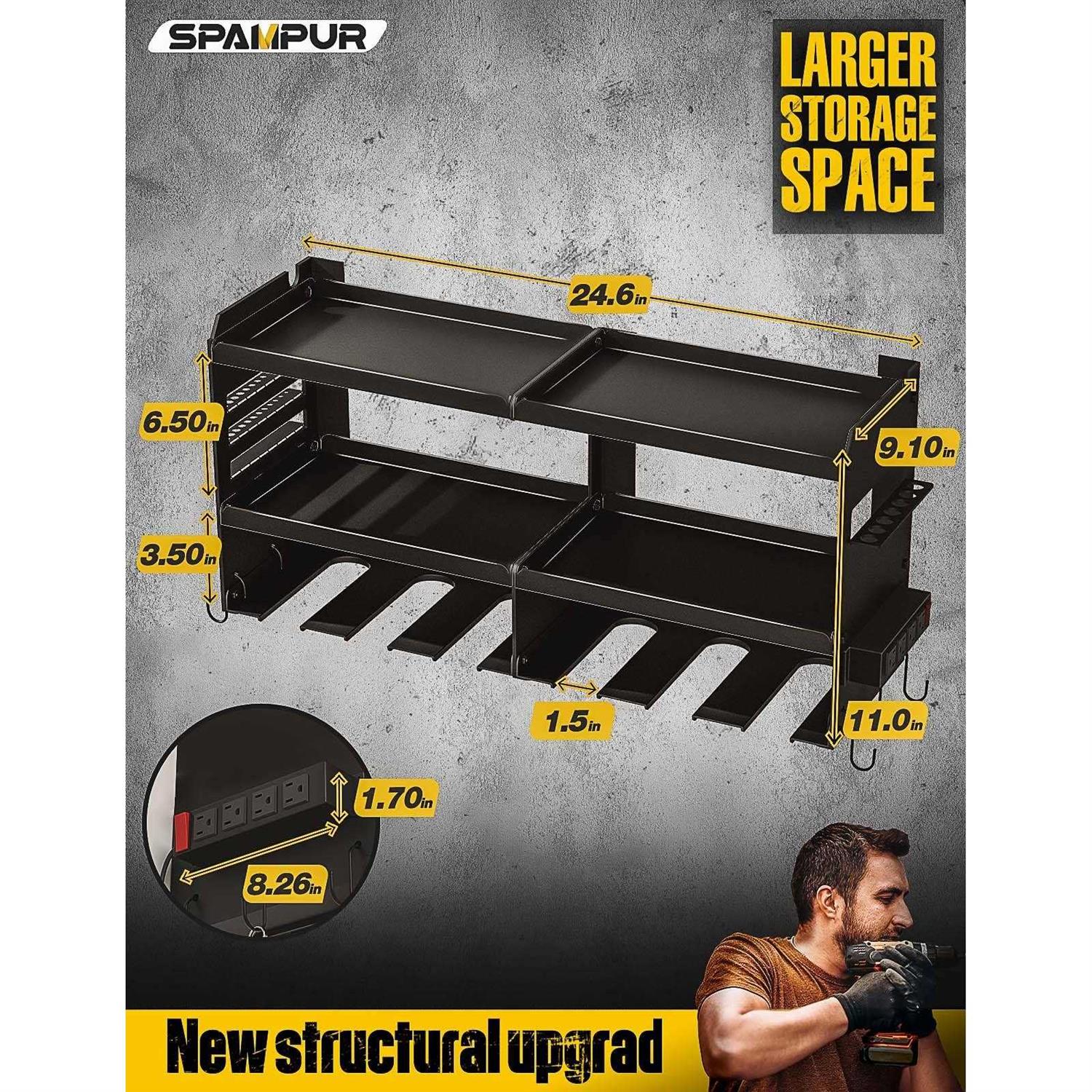 Spampur Power Tool Organizer, Garage Organization with 6 Drill Holders Wall Mount, 3 Layers Heavy Duty Metal Premium Garage Utility Tool