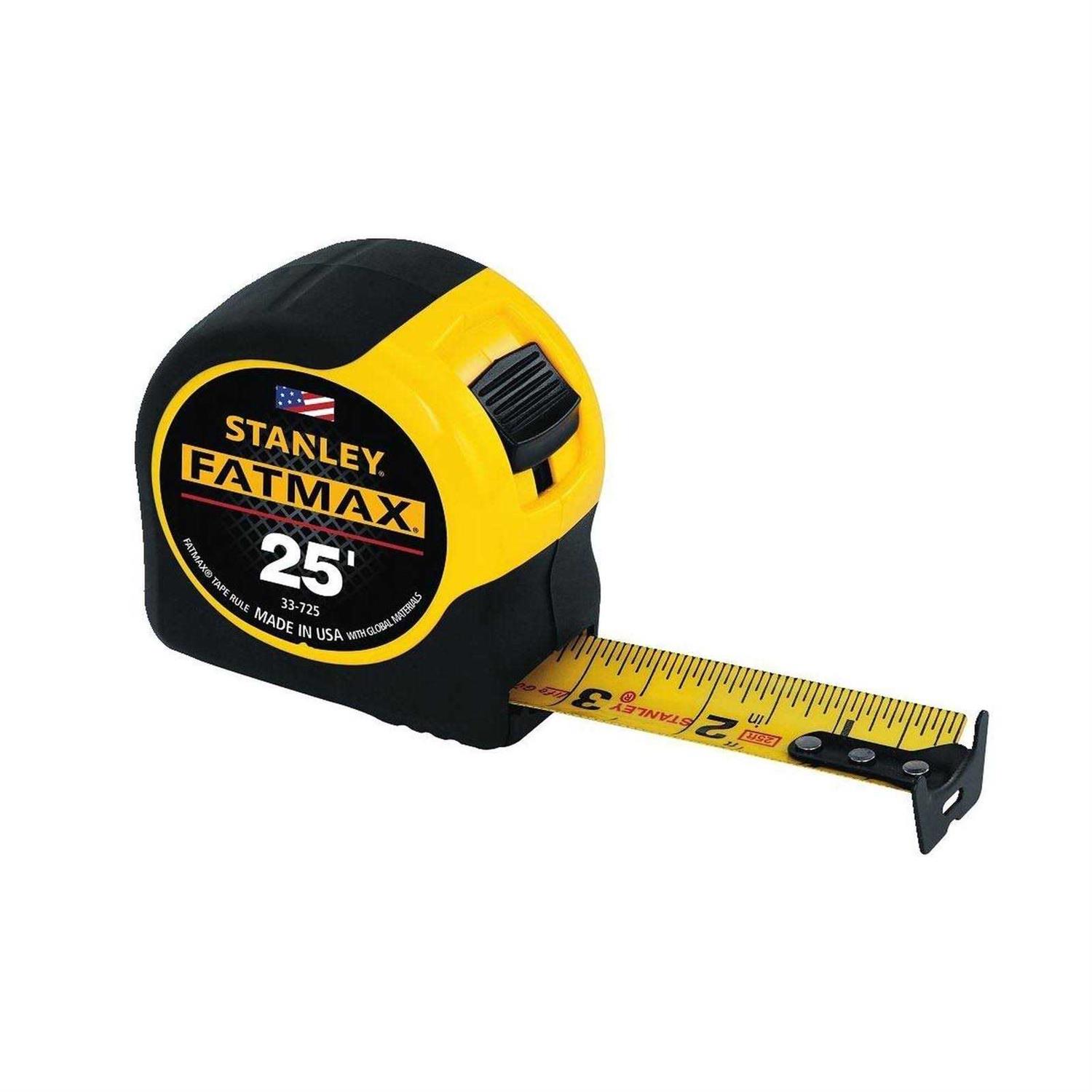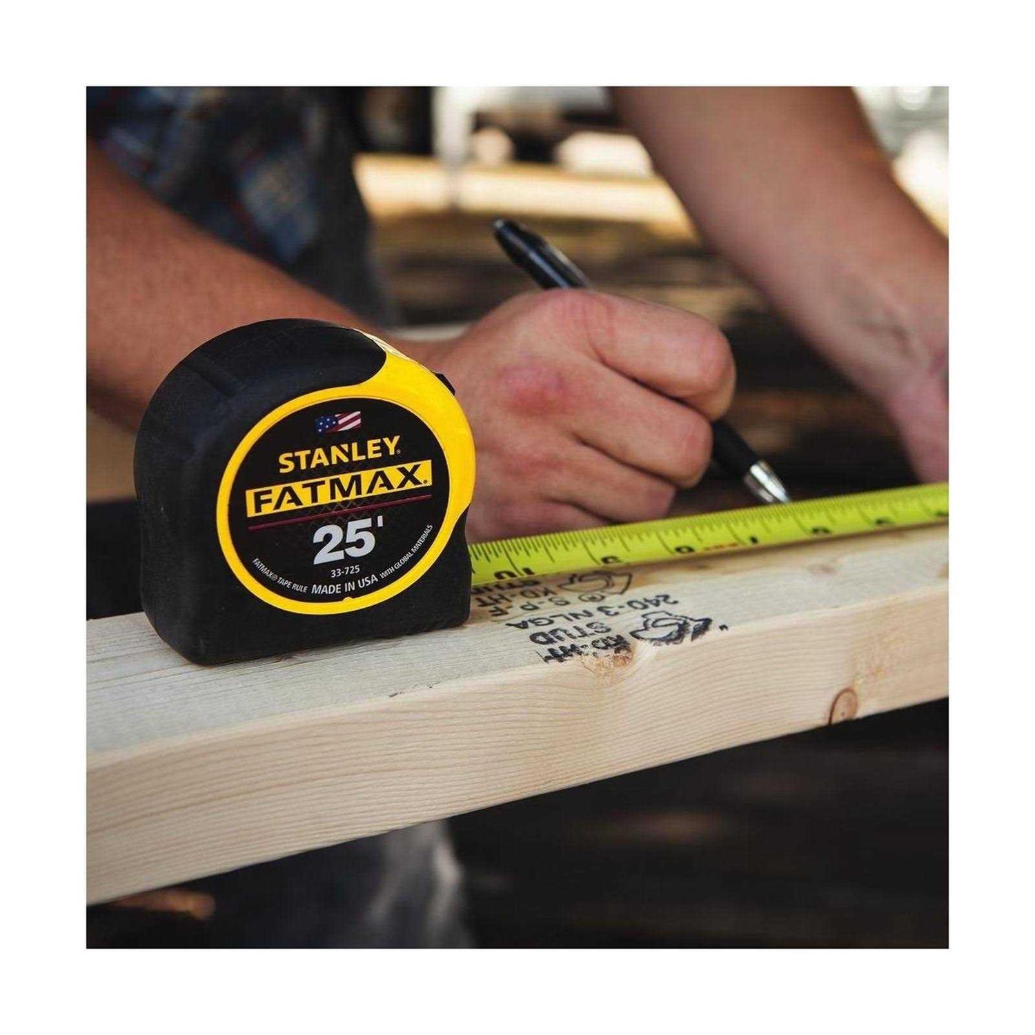 Tape Measures by Stanley. Details:The Stanley FMHT74038A fatmax 25 foot tape measure, 2PK is extra tough and durable thanks to industrial-grade blade Armor coating on the first 3″ and a high-impact ABS case. The tape measure offers an 11′ blade standout, with a 1-1/4″ wide blade for easy readability. It has 16″ and 19.2″ stud center markings simplify framing jobs. It also features a three-rivet, corrosion-resistant Tru-Zero end hook for accurate measurements. The Mylar polyester Film extends the life of entire blade. The top-forward blade Lock makes locking and unlocking easy, along with a specially designed multi-catch hook which grabs on top or bottom for versatility. A high-impact ABS case with durable rubber-holds up to heavy use, and the cushion grip provides comfortable, slip-resistant hold. Includes: 1) Stanley fatmax 25.