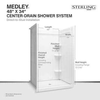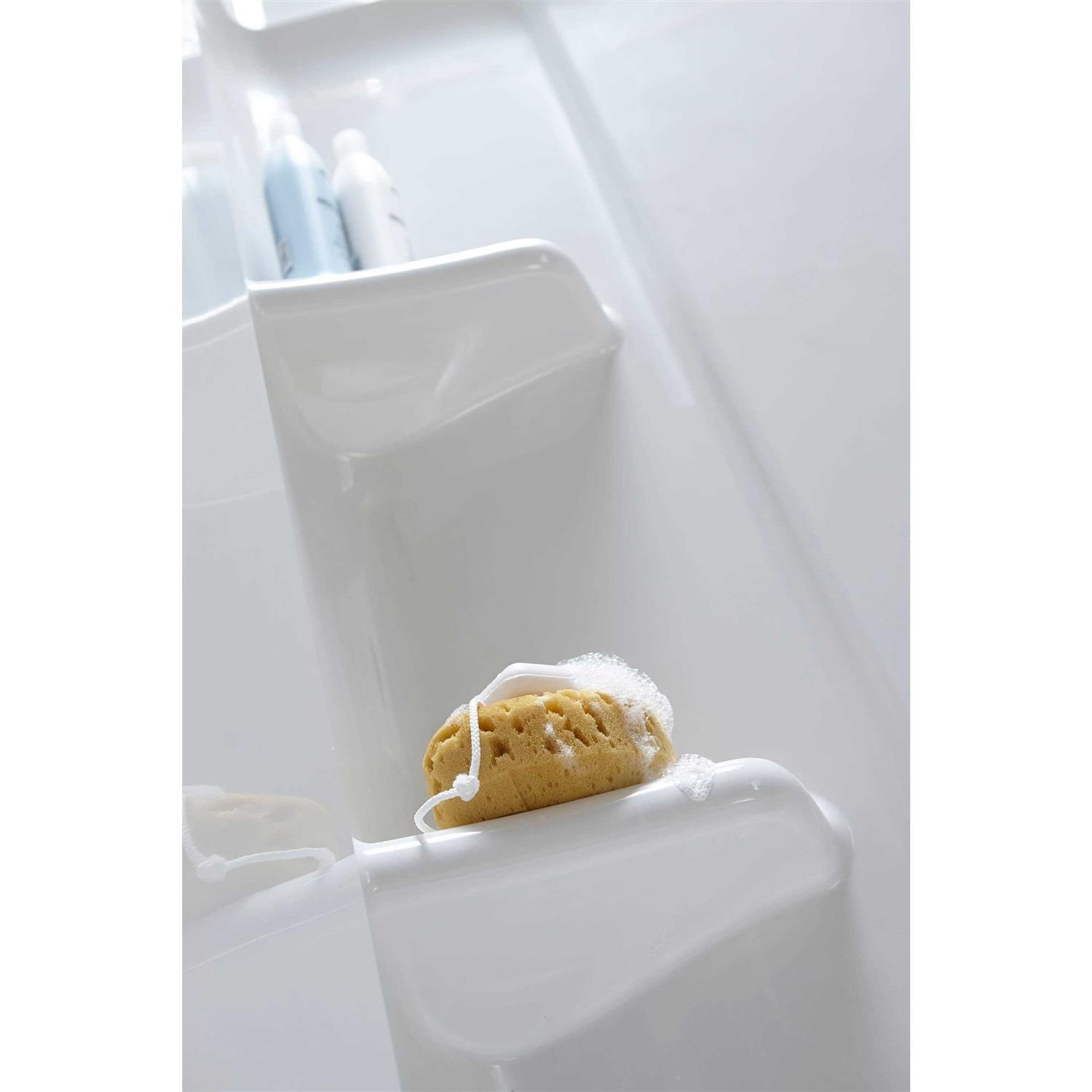 - Smooth wall design with molded-in shelves and shaving ledges.