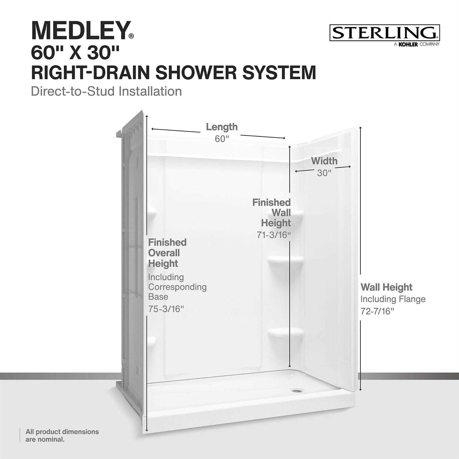 Sterling Medley 60-in x 70.75-in White Shower Surround Back Wall Panel