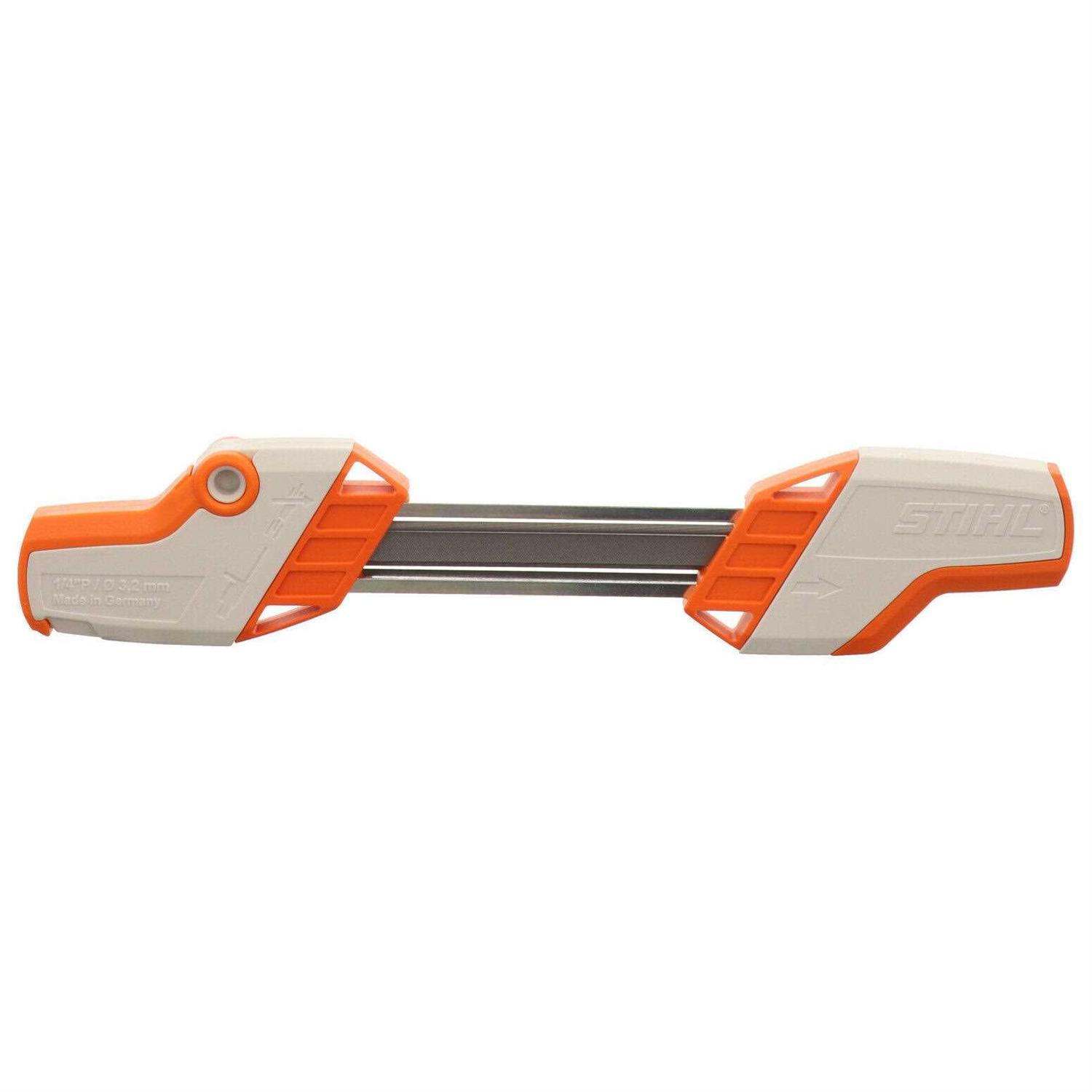 The STIHL 2 in 1 Filing Guide simplifies the process of sharpening your saw chain by completing two functions at once C sharpening your saw chain cutters and lowering your depth gauges. The ease and accuracy of this unique accessory makes it the perfect system for maintenance of your STIHL chainsaw. The system includes two round files one flat file and comes with a unique file holder and filing guide. The STIHL 2 in 1 Filing Guide gets more done with each stroke so you can spend less time sharpening your saw chain and more time putting your chainsaw to work.