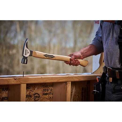 This framing hammer features a titanium head, with a magnetized groove that holds the head of the nail while you set it, to protect your thumb and fingers. It s lightweight, at only 16 ounces and has an ergonomic straight style Poly fiberglass handle with rubber grip to generate leverage and increase grip.