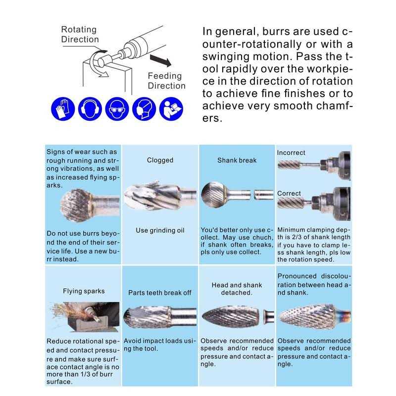 - High Percision: USA and Germany-made 6 axis CNC for burr fluting. Shape Variety: Cylindrical,Ball Nosed Cylindrical,Ball,Ball Nosed Tree.