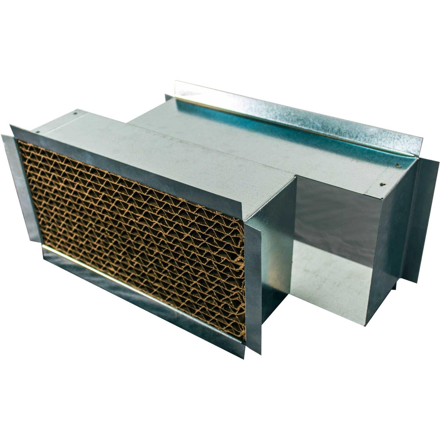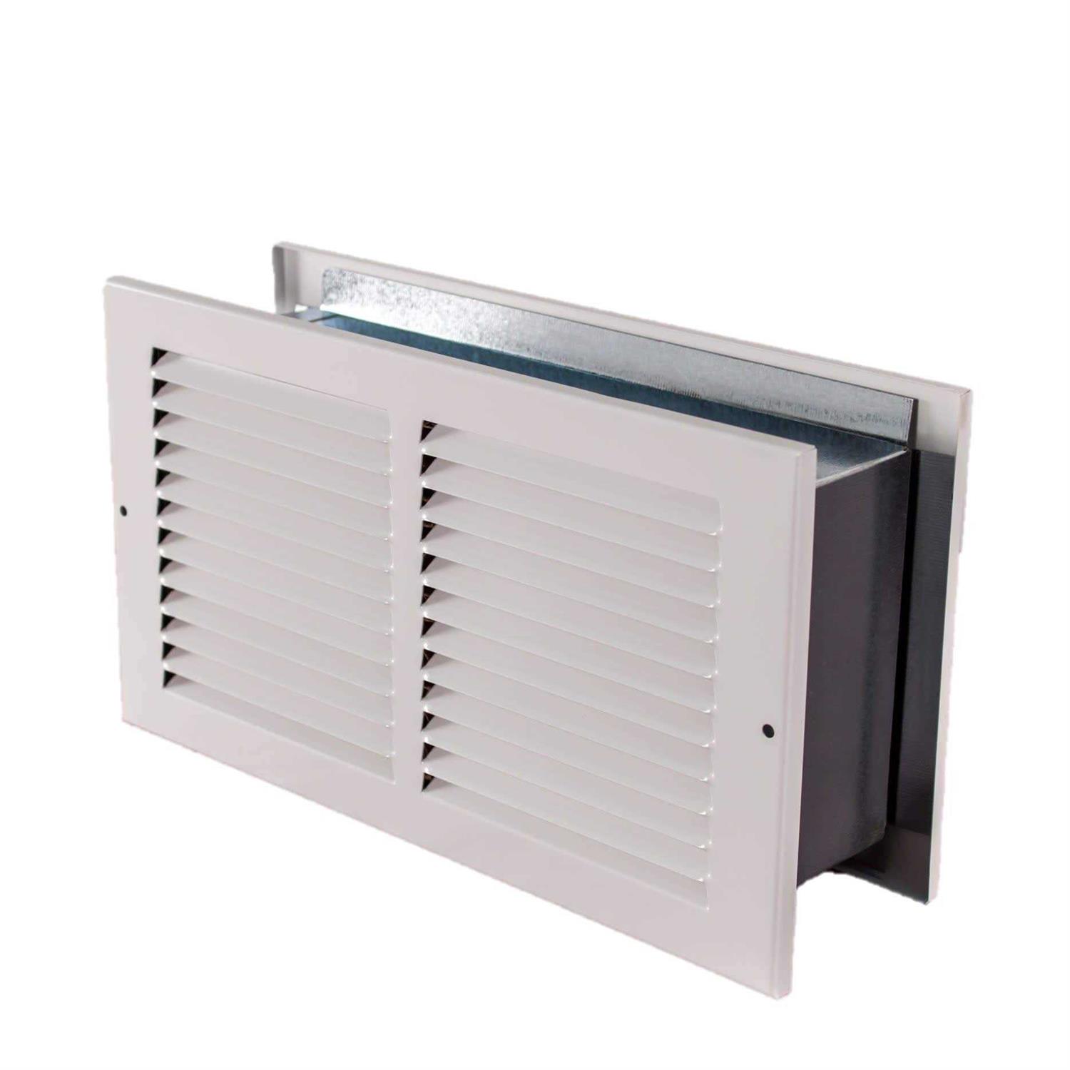 Pressure imbalances are developed in the building when air from the supply register of a forced air system is obstructed from reaching the return register. The pressure differences seek to balance themselves by leaking through available cracks and holes. The out-of-balance condition will reduce the efficiency of the heating, cooling, or ventilation system. While undercutting the doors can help, this is usually insufficient. Adding Tamarack Return Air Pathways inside interior walls during wall construction however, will allow the system to work more efficiently, balancing the pressure in the building to reduce the chance of inadvertent leakage. A Return Air Pathway will be effective regardless of location, providing it is placed inside a wall that separates an air supply and return duct. A variety of sizes are offered. Return Air Pathways include two white grills and have a sheetrock flange. The depth between flanges is 3.5 inches. The overall depth is 4.625 inches. This has a two-piece design, allowing it to be installed in either new or existing construction.