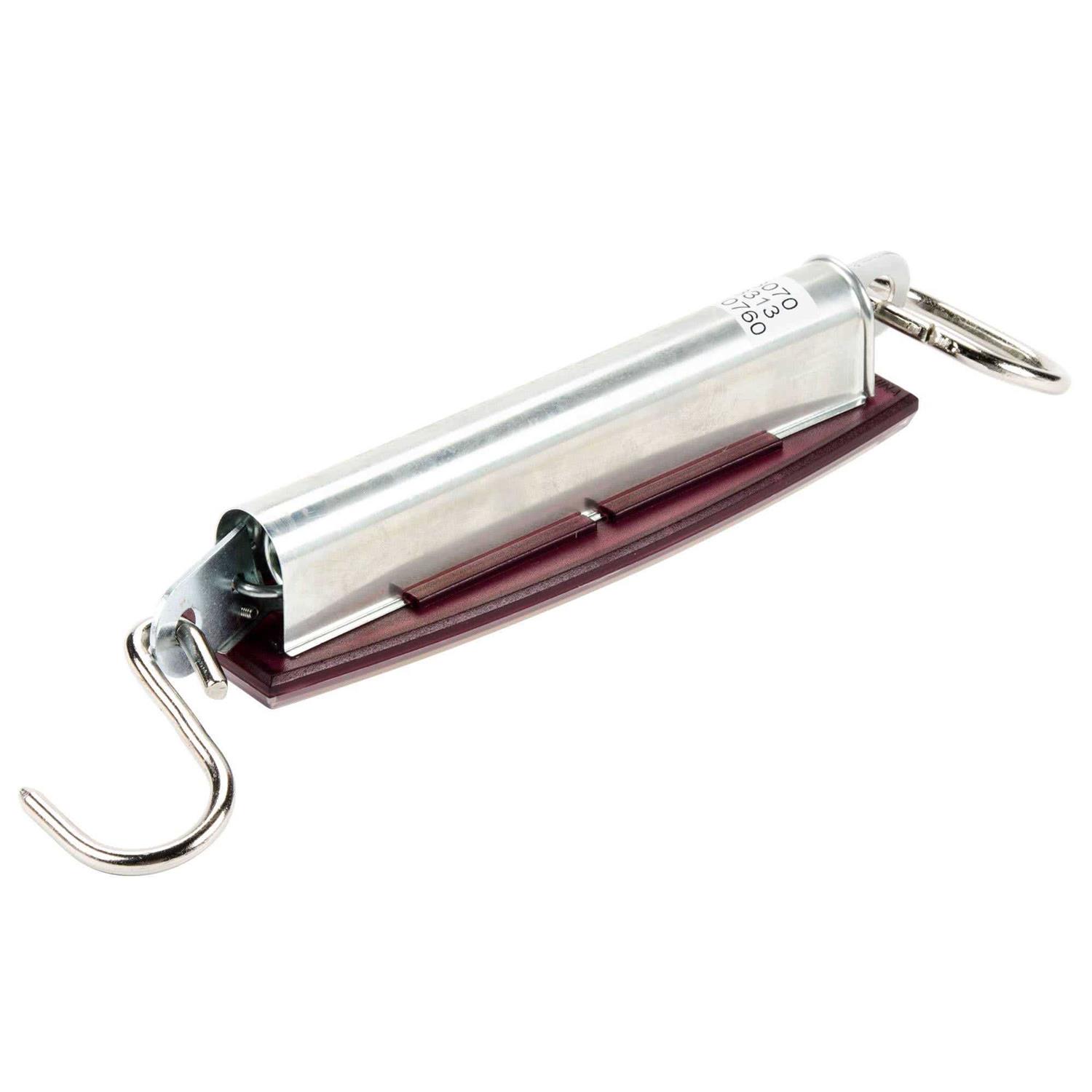 - Equipped with a metal ring at the top and a metal S-hook for the bottom of the scale