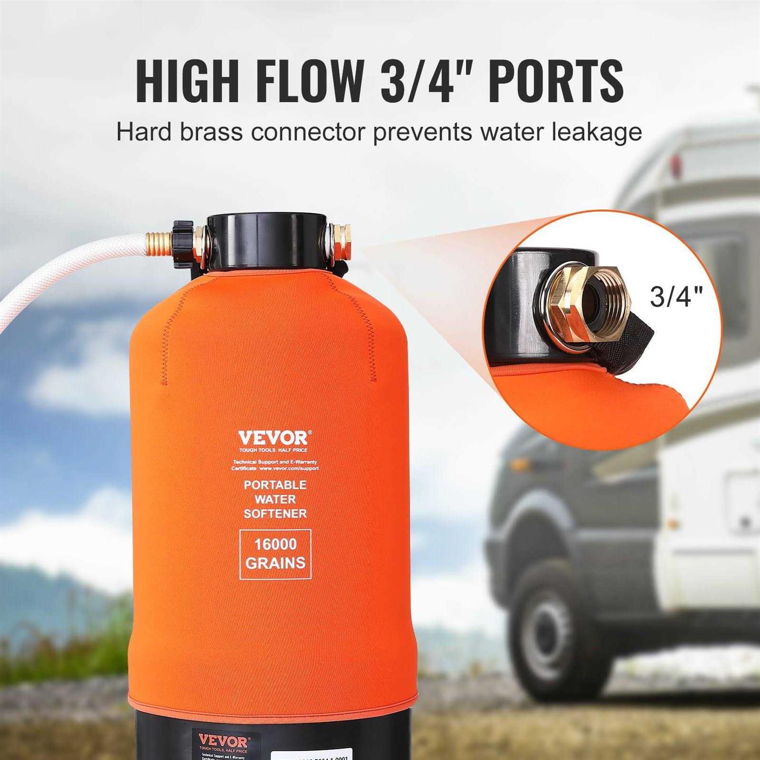VEVOR Rv Water Softener, 16,000 Grain Portable Water Softener, with 3/4 Brass Fittings and 42 Hose