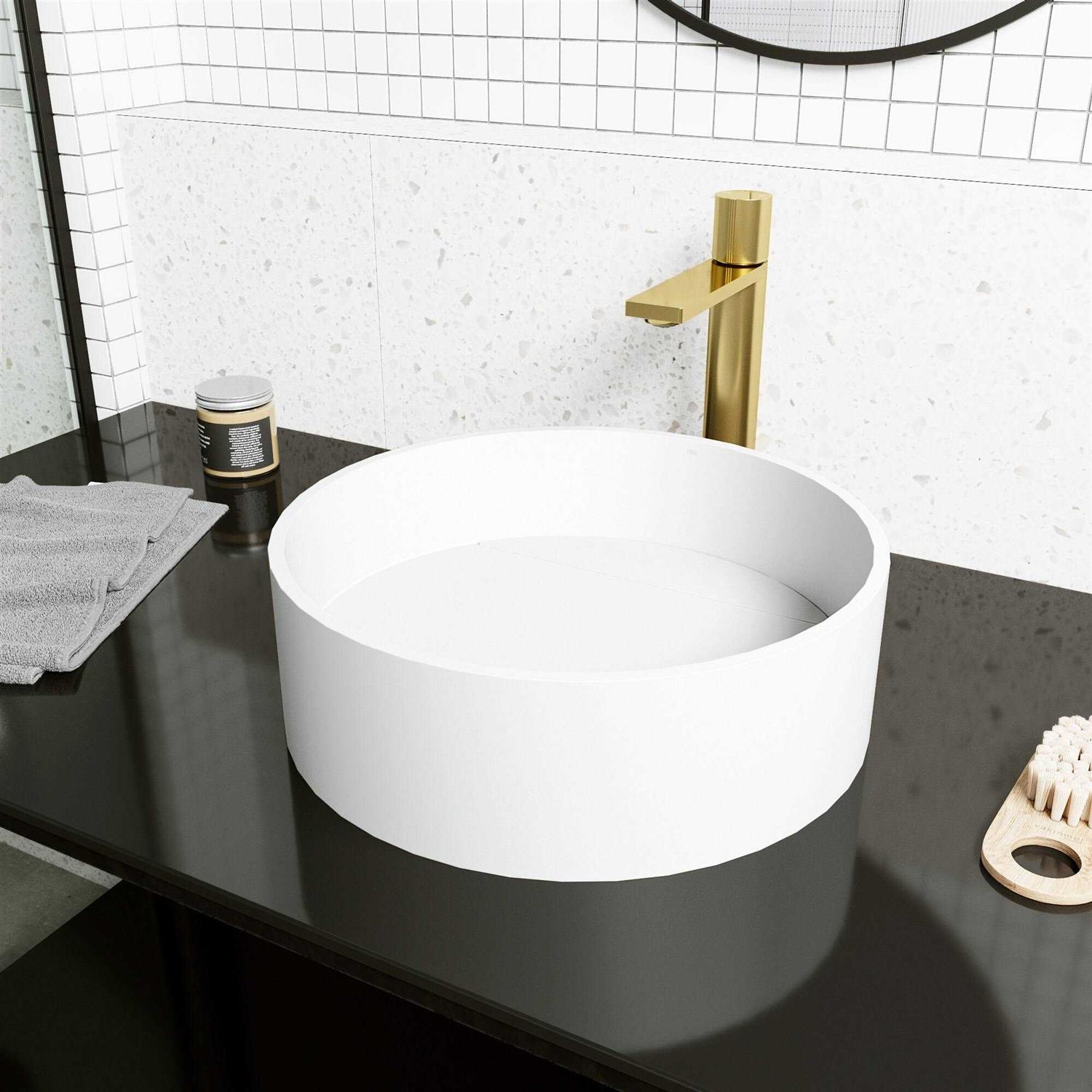 A round design shape and exclusive stone material distinguish The Bryant by VIGO. Constructed from VIGO’s exclusive Matte Stone material, this vessel bathroom sink is solid-to-the-core, more robust and more durable than conventional vessel sink materials like fireclay. Its unique stone material delivers a clean white color and a smooth to the touch surface. Its drain plate elegantly hides the drain and provides a flawless cleaning experience. The Bryant matches innovation with style to create a highly functional art fixture for your bathroom.